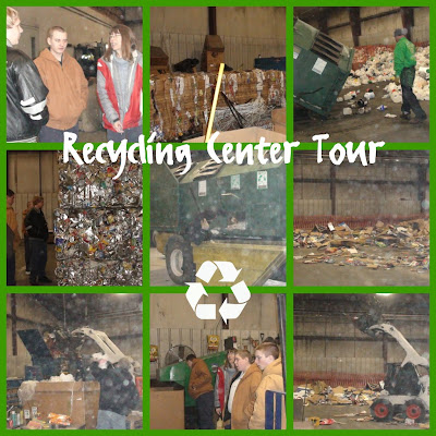 Mr Dave's Intro to Business and Ms Winge's Civics Literacy Classes recently toured the Midwest Recycling Center In Fort Dodge. The classes are involved in a community based project entitled "Reducing our Carbon Footprints". It was learned that glass, plastics, cardboard, and newspaper are baled and then shipped out for resale to be made into new products, such as shirts, carpets and other household items.